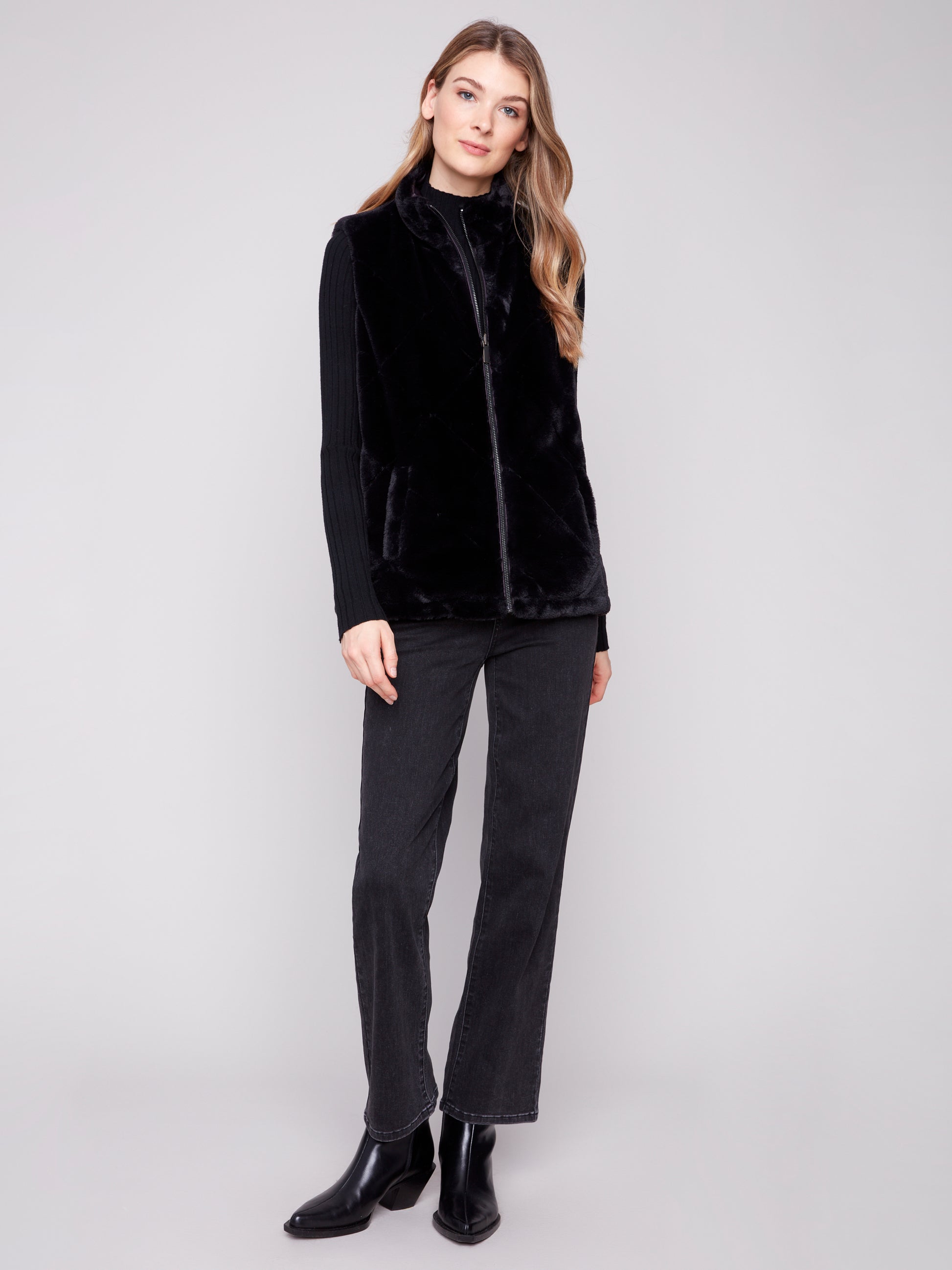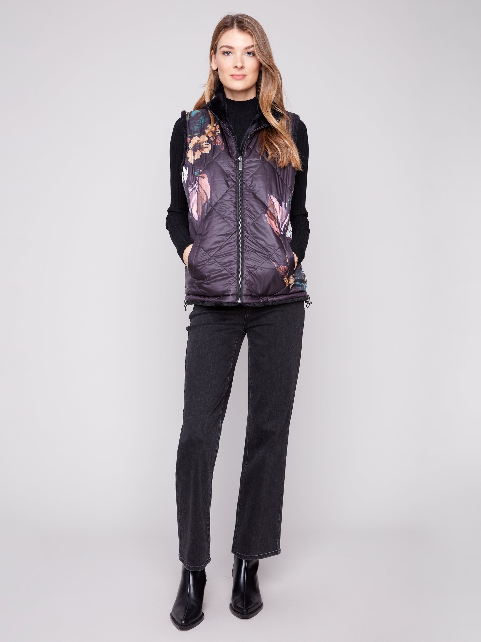 This is the coolest, most versatile vest! One side is a beautiful printed quilted fabric and the other side is faux fur!! It has pockets both sides which is an awesome feature!!