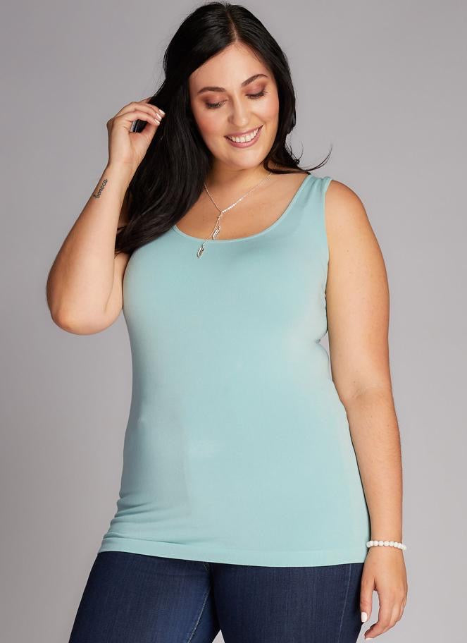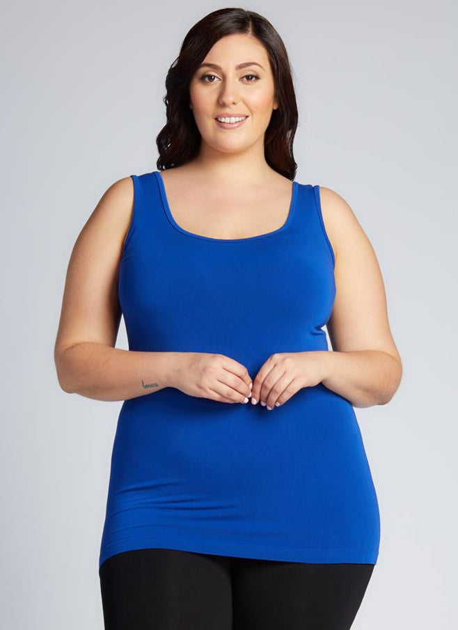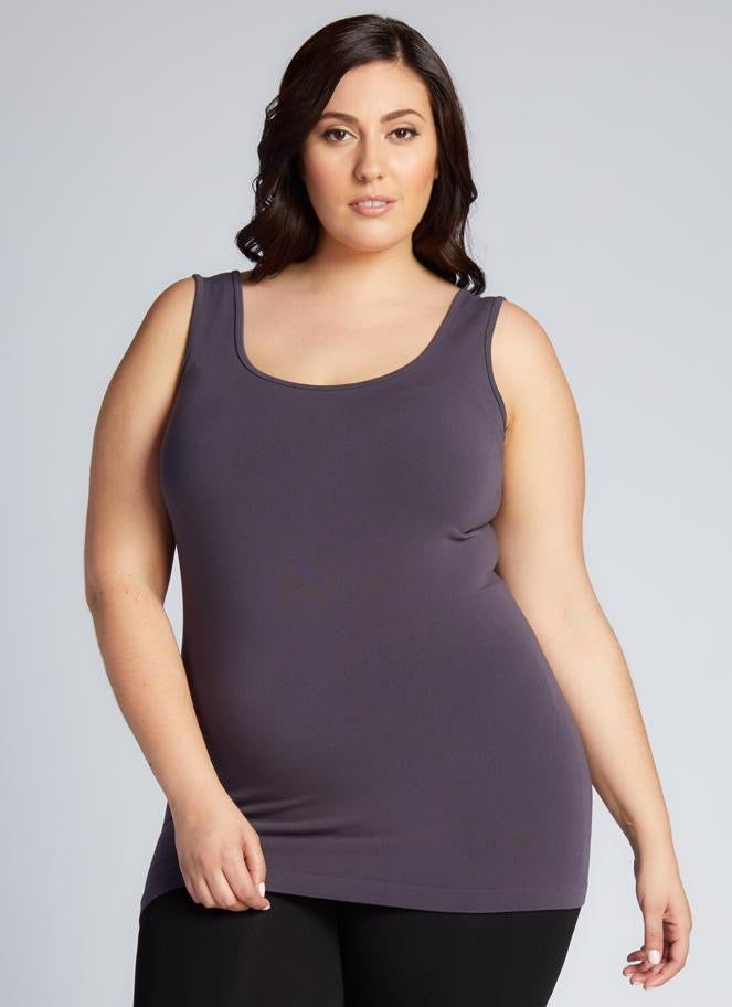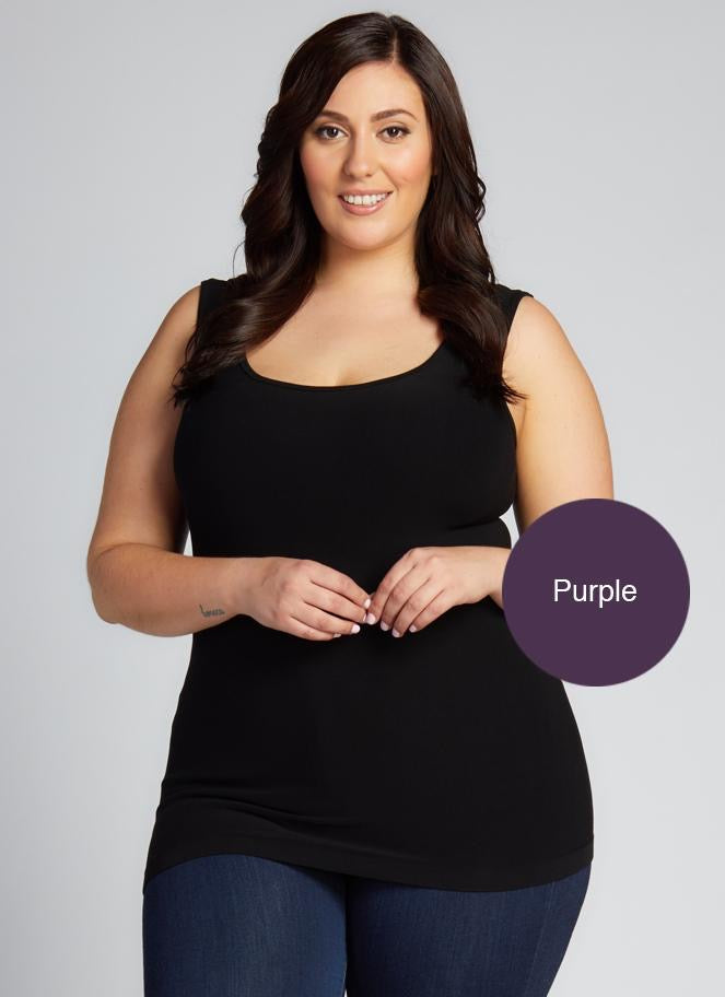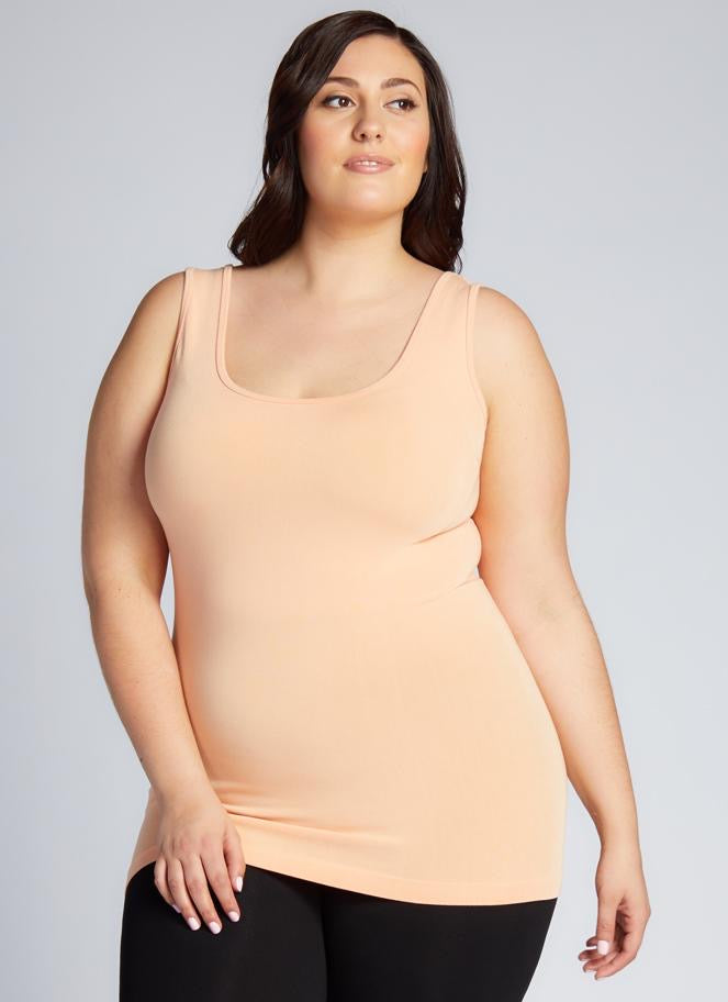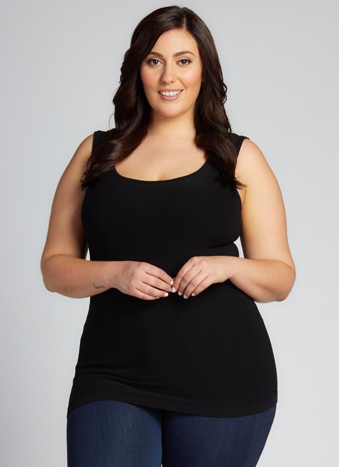 Thick straps and a scoop on both sides makes this tank bra-friendly and it will fit sizes 16-22.