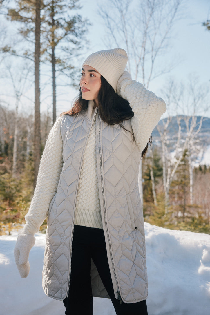 This quilted coat made with Eco Therm™ offers the perfect balance of warmth and lightness, ideal for cool days. Made from recycled polyester, it provides comfort, freedom of movement, and long-lasting durability to carry you through the seasons.