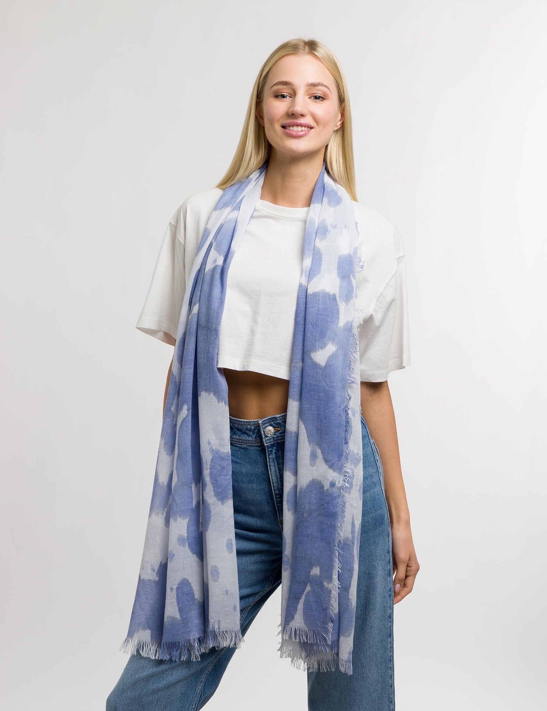 Fashionable, comfortable & versatile! Our airy polyester viscose transition scarf is an essential style that is comfortable to wear, providing lightweight warmth without the bulkiness. The bleached out effect gives a unique distressed look, but is subtle enough to work as an elevated alternative to the solid wrap. This looks perfect with a everyday-casual outfit, but can also be combined with an elegant blazer or dress to create a chic business look.