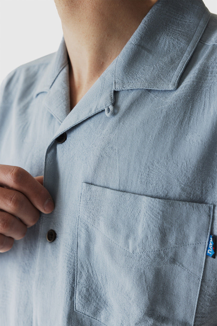This shirt starts out with a great texture provided by the jacquard weave on this 100% certified organic cotton yarn dye. Grab your piña colada, we're headed to Margaritaville!