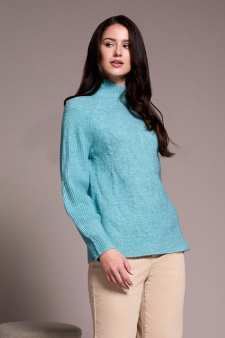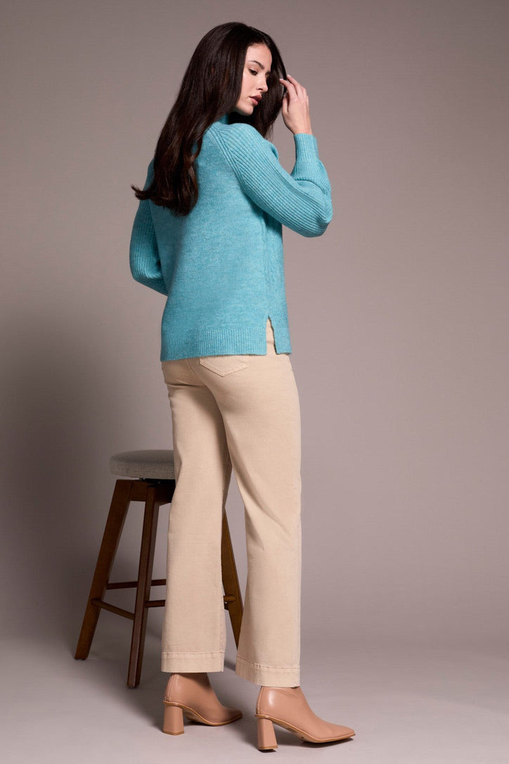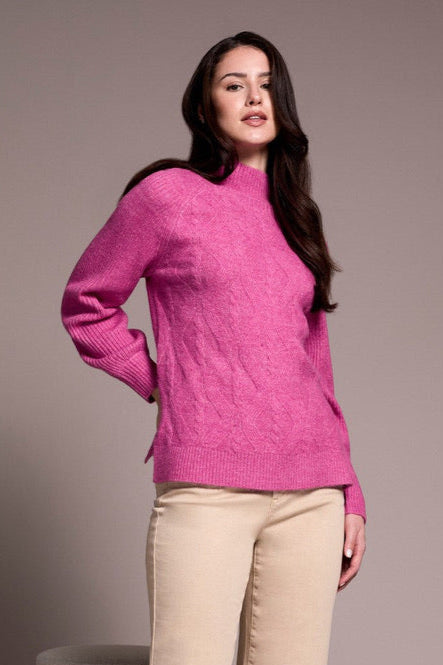 Cooler days call for this cozy sweater, crafted from a soft blend yarn with a rich texture for a luxurious feel. A sleek mock neckline and long puff sleeves add effortless elegance, while fitted cuffs create a refined finish.