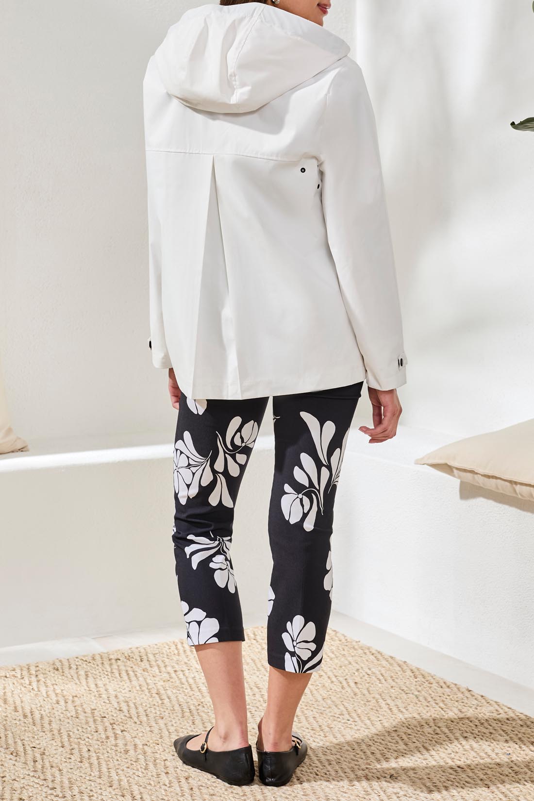 It features two side seam buttons and front pockets.