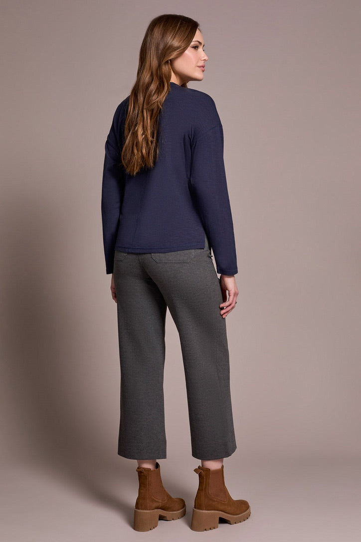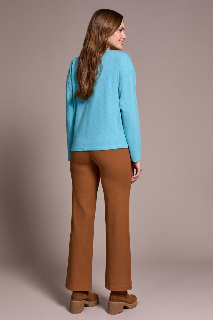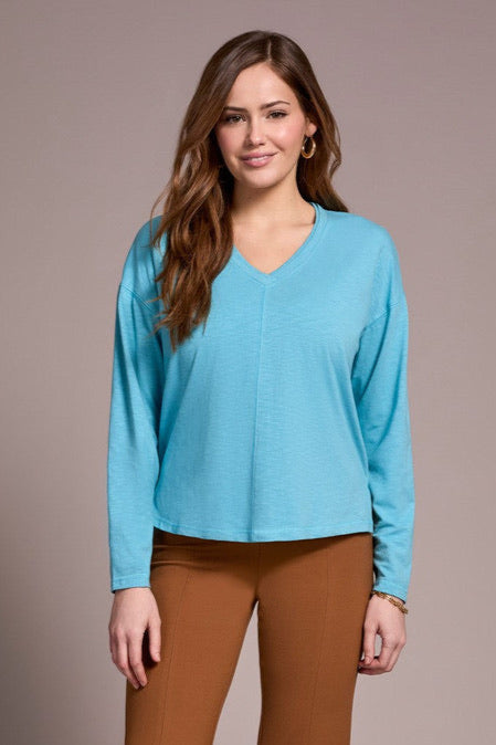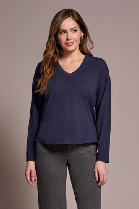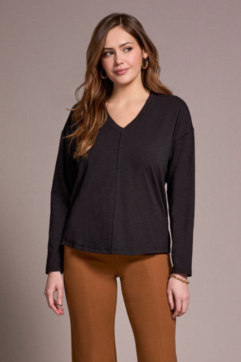 Opt for versatile, everyday style with this long-sleeve top, featuring a flattering V-neckline. The flatlock seams introduce subtle structure to this relaxed piece, while the slub knit fabric offers breathability, softness, and a touch of stretch for all-day comfort.